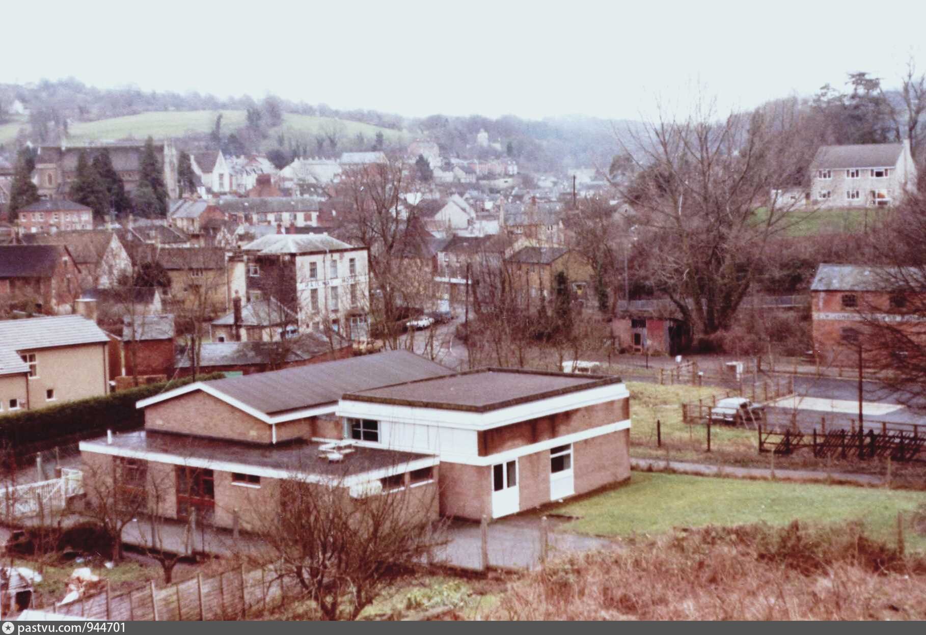 View across the former railway goods yard and Railway Hotel viewed from Watledge, with the fire station in the foreground